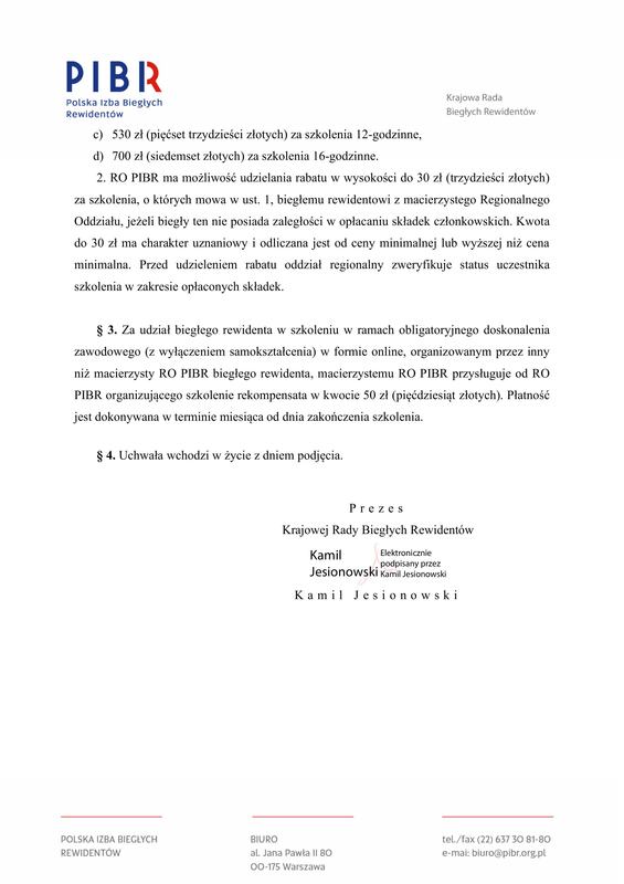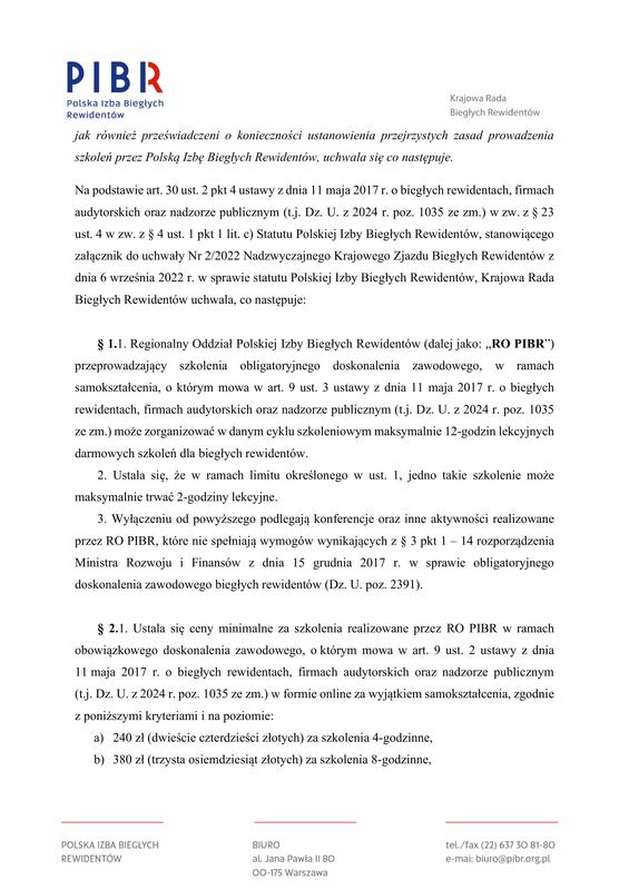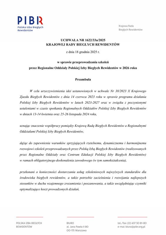 informujemy, że na podstawie Uchwały Nr 1622/33a/2025 Krajowej Rady Biegłych Rewidentów z dnia 18 grudnia 2025 r., w sprawie przeprowadzania szkoleń przez Regionalne Oddziały PIBR w 2026 roku,